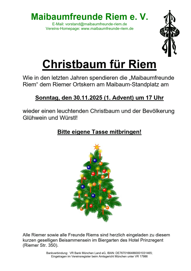 Christbaum Aufstellung am Sonntag, 30.11.2026